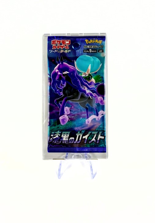 Booster scellé officiel de l’édition Épée et Bouclier : Raven Geist, présenté dans une protection acrylique résistante aux UV.